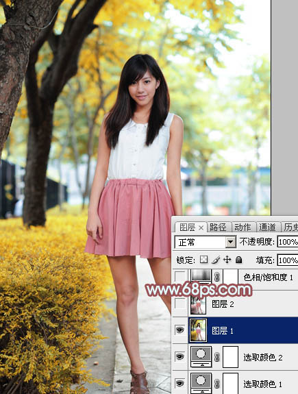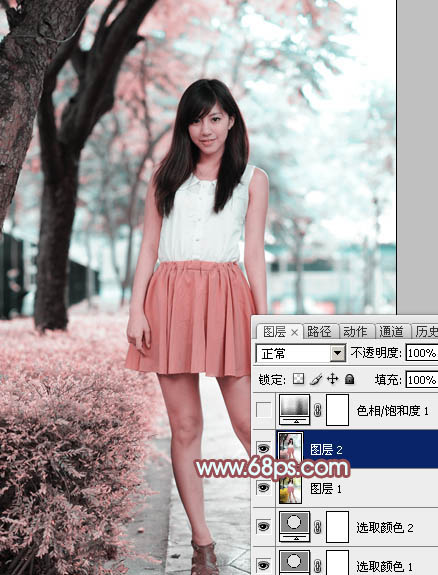Photoshop给树下的美女加上甜美的粉调青红色(3)