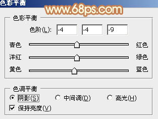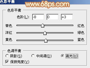 5、创建色彩平衡调整图层,对阴影,高光进行调整,参数设置如图20,21,效果如图22。这一步增强图片暗部及高光部分的颜色。