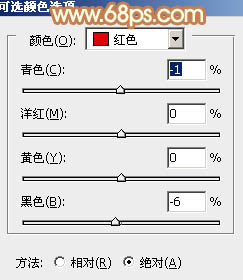 7、再创建可选颜色调整图层,对红,黄进行调整,参数及效果如下图。这一步同样把图片中的暖色调淡。