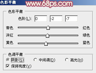 6、创建色彩平衡调整图层,对阴影,高光进行调整,参数设置如图15,16,效果如图17。这一步微调暗部及高光部分的颜色。