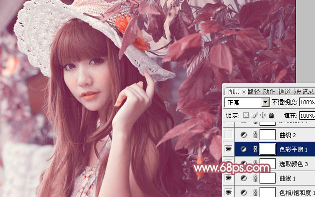 Photoshop给树叶下的美女加上甜美的橙色(4)