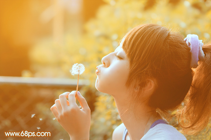 黄褐色比较适合外景图片调色,过程也比较简单,只需要把图片主色转为较淡的橙黄色,然后给暗部增加一些红褐色,后期再渲染一些高光,简单美化一下人物部分即可。