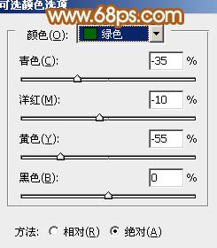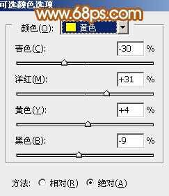 1、打开素材图片,创建可选颜色调整图层,对黄、绿、青、中性、黑进行调整,参数设置如图1 - 5,效果如图6。这一步给图片增加橙黄色。