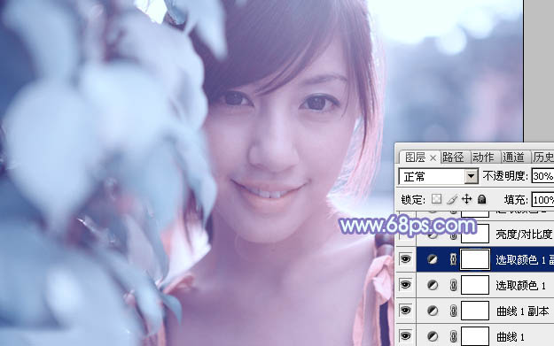 5、按Ctrl + J 把当前可选颜色调整图层复制一层,不透明度改为:30%,效果如下图。
