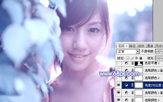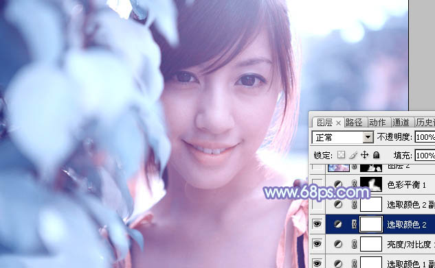 利用PS通道替换给树叶边的美女加上梦幻的淡蓝色(4)