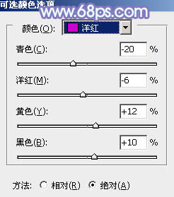 7、创建可选颜色调整图层,对红,洋红进行调整,参数设置如图13,14,效果如图15。这一步主要把人物肤色调红润。