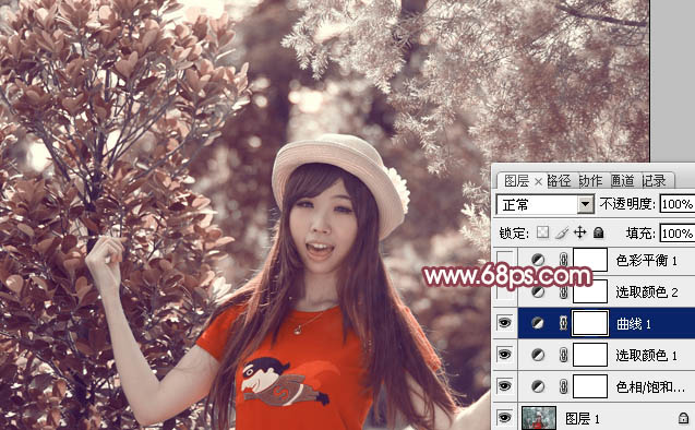 Photoshop给树林人物图片加上鲜丽的橙褐色(3)