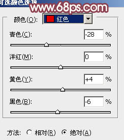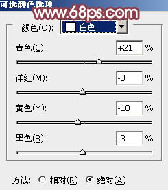 7、创建可选颜色调整图层,对红、黄、白、黑进行调整,参数设置如图19 - 22,效果如图23。这一步给图片增加橙黄色,高光部分增加淡青色。
