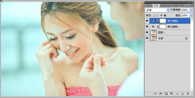 6、接下来我们给照片添加一点环境色,让照片更加清晰唯美,我们把他定义为融色,通常融色的工具用照片滤镜再适合不过了。