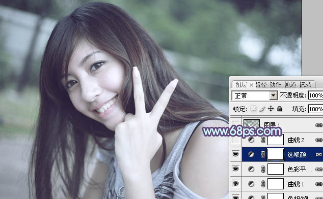 Photoshop给外景美女加上柔美的中性青蓝色(3)