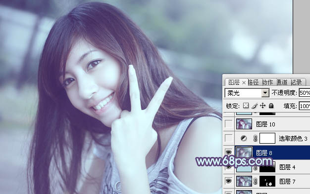 Photoshop给外景美女加上柔美的中性青蓝色(7)