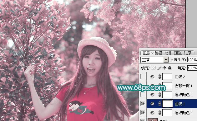 Photoshop给树林人物图片加上梦幻的淡调青紫色(4)