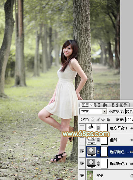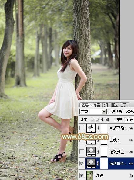 Photoshop给树林美女加上淡淡的黄绿色(2)