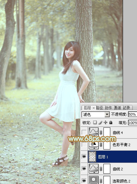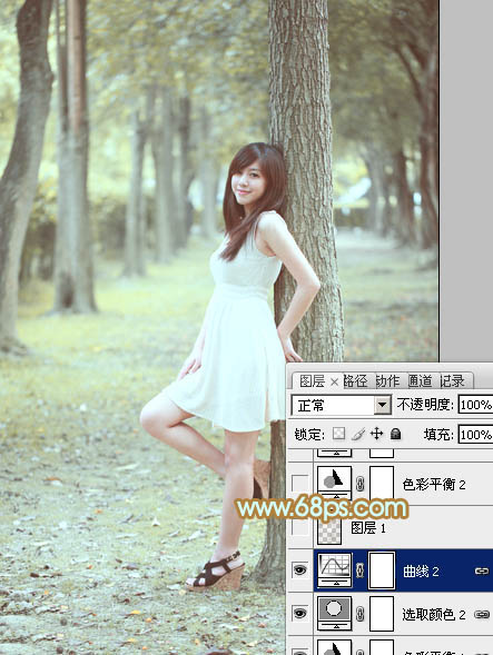 Photoshop给树林美女加上淡淡的黄绿色(5)