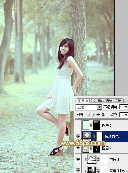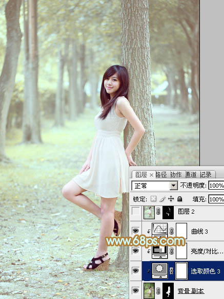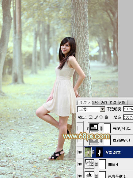 Photoshop给树林美女加上淡淡的黄绿色(7)