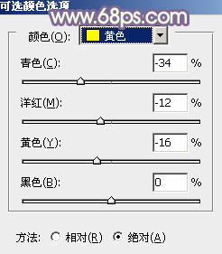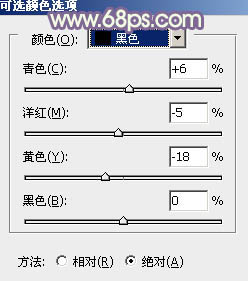 1、打开素材图片,创建可选颜色调整图层,对黄、绿、黑进行调整,参数设置如图1 - 3,效果如图4。这一步主要给草地部分增加暖色。