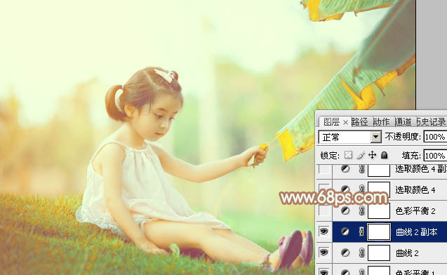 Photoshop给芭蕉叶下的女孩加上小清新黄绿色(6)