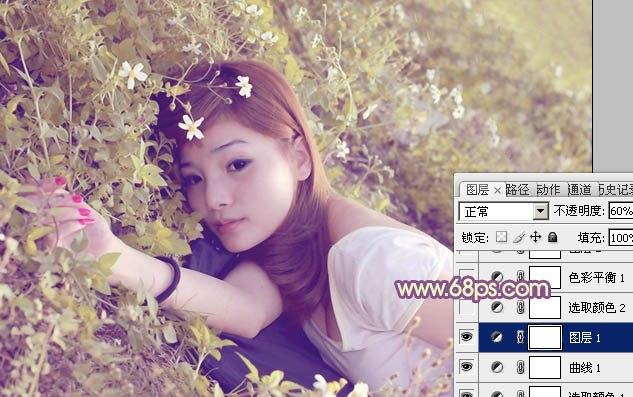 Photoshop给草地美女图片加上柔美的早秋暖色(3)