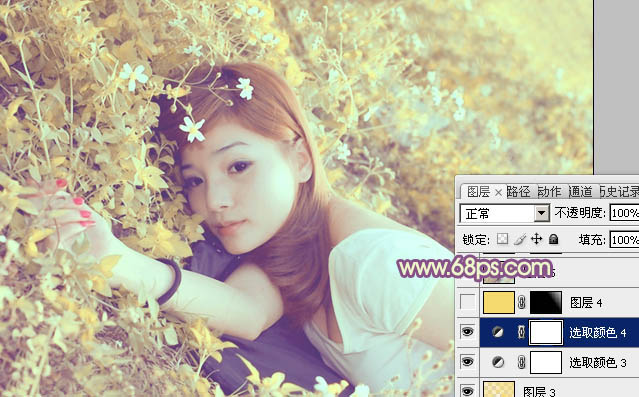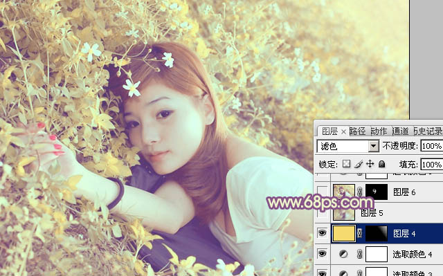 Photoshop给草地美女图片加上柔美的早秋暖色(7)
