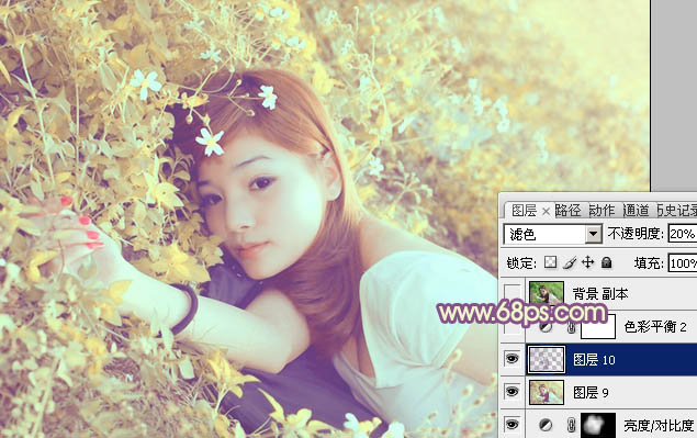 Photoshop给草地美女图片加上柔美的早秋暖色(8)