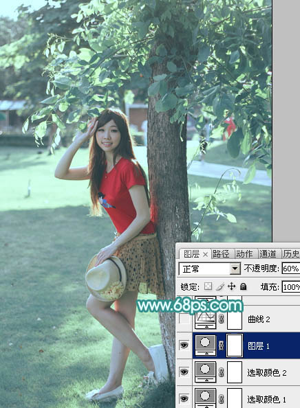 Photoshop给树下的女孩加上清新的青绿色(3)