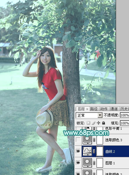 Photoshop给树下的女孩加上清新的青绿色(4)