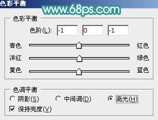 7、创建色彩平衡调整图层,对阴影,高光进行调整,参数设置如图21,22,效果如图23。这一步微调图片暗部及高光部分的颜色。
