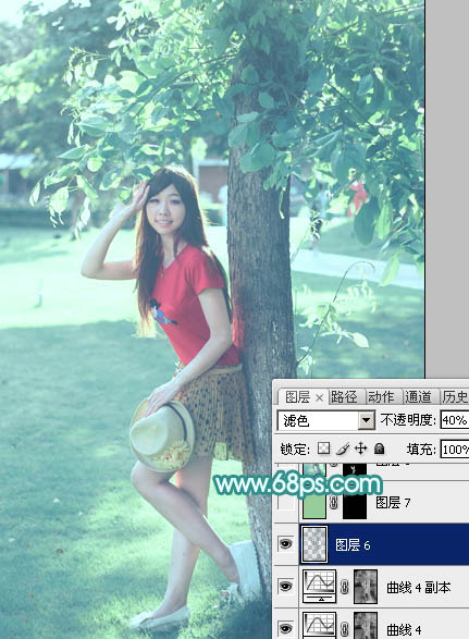 Photoshop给树下的女孩加上清新的青绿色(9)