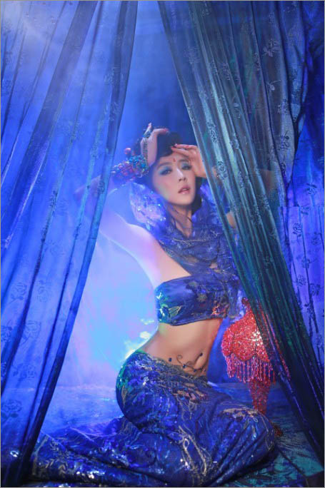 Photoshop给室内古装美女加上梦幻的蓝色调(2)