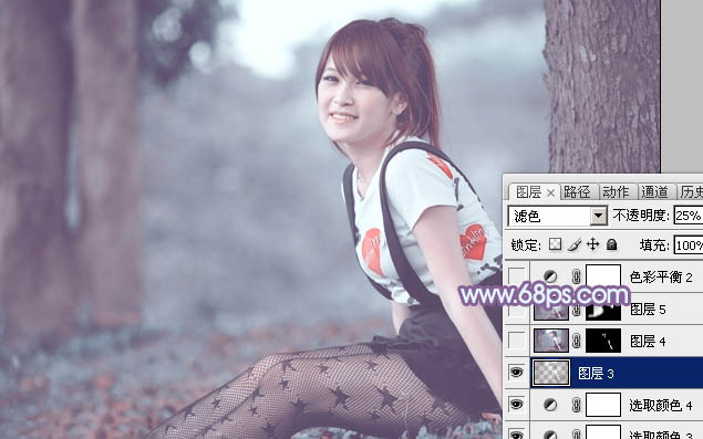 利用通道替换给树林美女加上柔美的淡调蓝紫色(6)