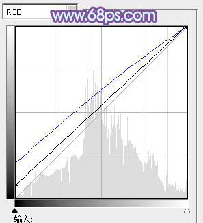 4、创建曲线调整图层,对RGB,蓝通道进行调整,参数及效果如下图。这一步适当增加图片暗部亮度,并增加蓝色。