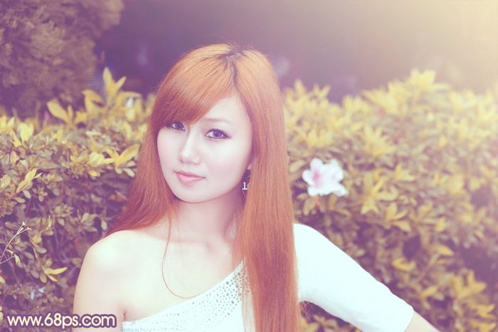 素材图片背景有点偏暗,转为暖色后需要把暗部提亮一点,这样图片就会柔和很多,同时还需要给人物脸部及肤色部分单独调色,把人物甜美感渲染出来。