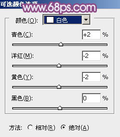 15、创建可选颜色调整图层,对红,白进行调整,参数设置如图42,43,确定后把图层不透明度改为:50%,效果如图44。这一步微调图片主色及高光部分的颜色。