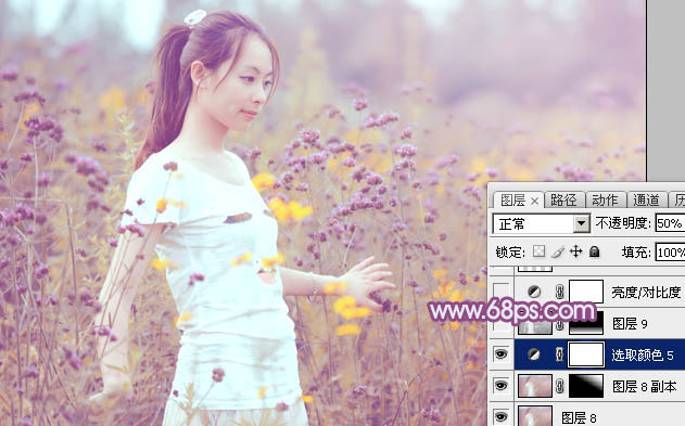 Photoshop给野花中的美女加上柔美的淡紫色(8)