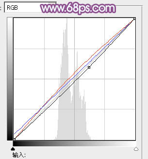 12、按Ctrl + Alt + 2 调出高光选区,按Ctrl + Shift + I 反选,创建曲线调整图层,对RGB、红、蓝通道进行调整,参数及效果如下图。这一步适当加强图片暗部颜色。