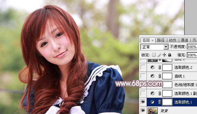 Photoshop给树林美女加上淡美的中性青红色(2)