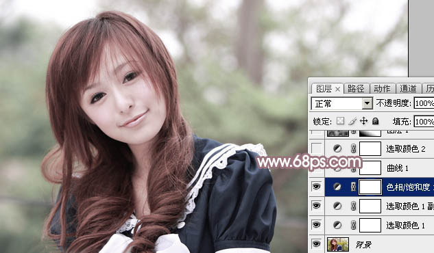 Photoshop给树林美女加上淡美的中性青红色(3)