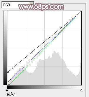 4、创建曲线调整图层,对RGB、绿、蓝通道进行调整,参数设置如图8,效果如图9。这一步增加图片暗部亮度,并给暗部增加紫红色。