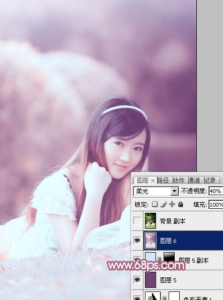 Photoshop给甜美外景美女加上小清新的粉红色(10)