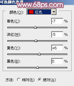 7、创建可选颜色调整图层,对红、黄、白进行调整,参数设置如图15 - 17,效果如图18。这一步给图片增加一些橙红色。