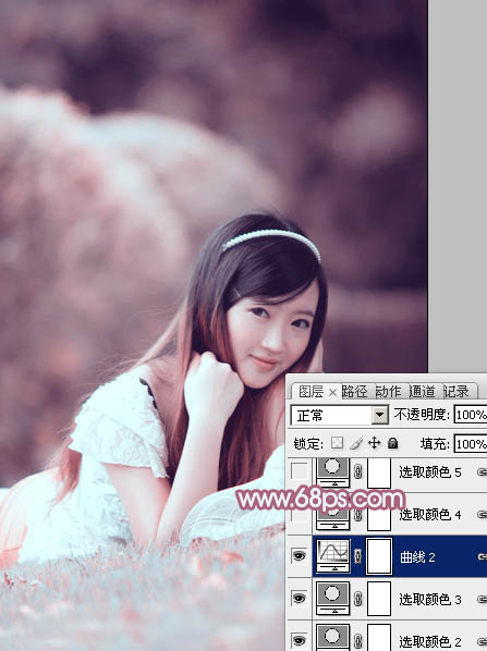 Photoshop给甜美外景美女加上小清新的粉红色(5)