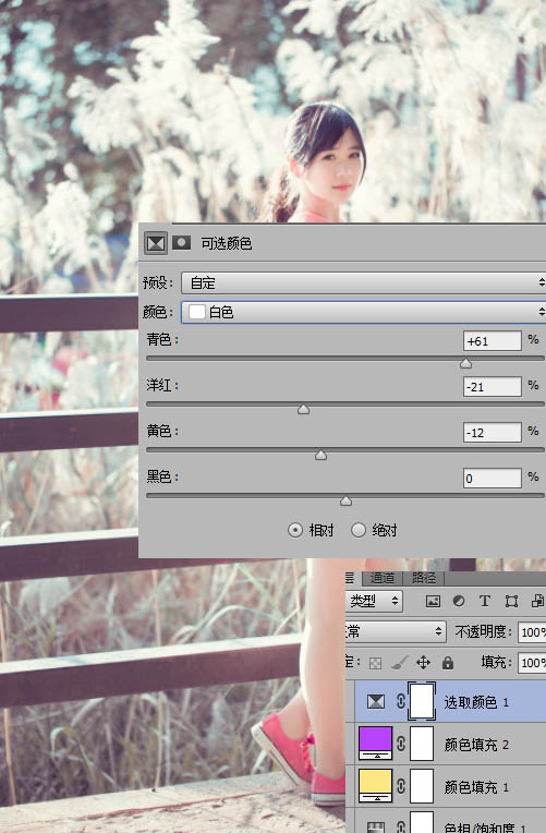 Photoshop给芦苇边的美女加上通透的甜美色(5)