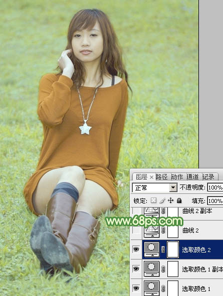 Photoshop给草地上的人物增加淡美的阳光色(3)