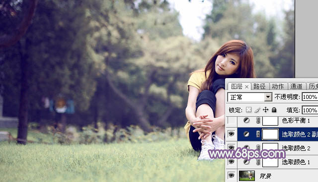 Photoshop给树林旁的美女加上柔和的绿紫色(3)