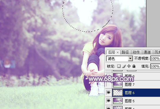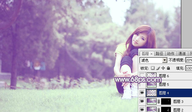 Photoshop给树林旁的美女加上柔和的绿紫色(7)