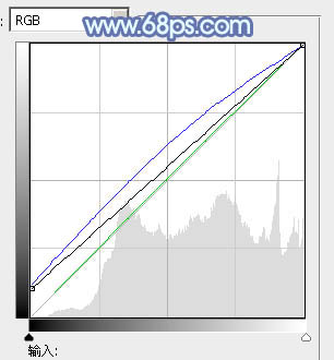 3、创建曲线调整图层,对RGB、绿、蓝通道进行调整,参数设置如图6,效果如图7。这一步适当增加图片暗部亮度,并增加蓝色。