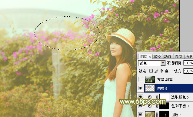 Photoshop给花草围墙边的美女加上柔和的韩系黄褐色(8)