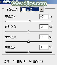 4、创建可选颜色调整图层,对黄、绿、青、白进行调整,参数设置如图10 - 13,效果如图14。这一步适当减少图片中的黄色及绿色。