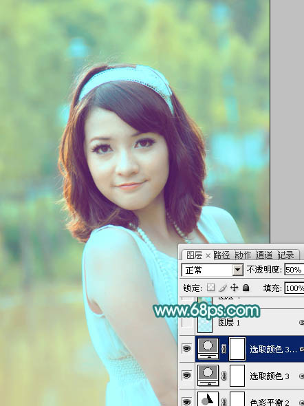 8、按Ctrl + J 把当前可选颜色调整图层复制一层,不透明度改为:50%,效果如下图。