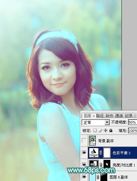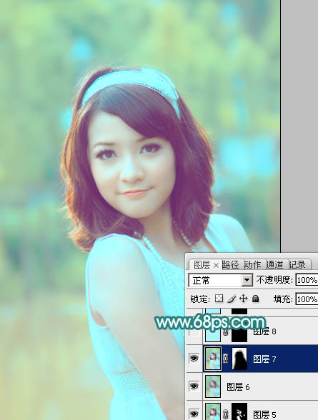 Photoshop给夏季外景美女加上清爽的甜美色(8)